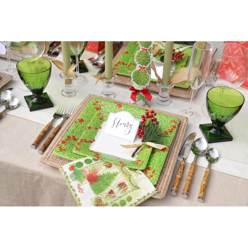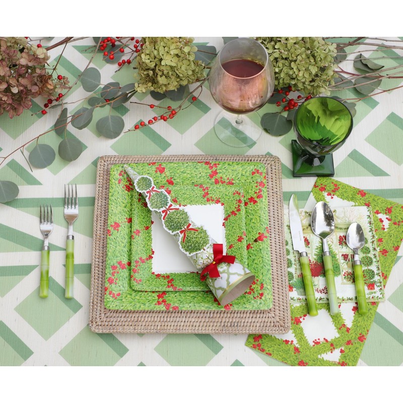 Caspari Holiday Boxwood Trellis Disposable Square Paper Dinner Plates - 8 Per Package