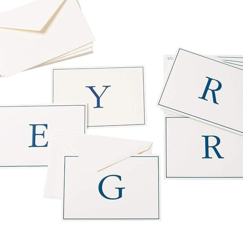 Caspari Navy Embossed Initials Boxed Note Cards in Letter Z, 8 Cards & Envelopes