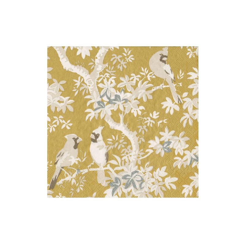 Caspari Scenic Songbirds Gold & Ivory Boxed Cocktail Napkins - 40 Per Box, 2 Boxes