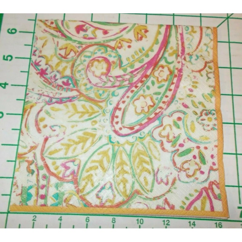 Caspari Two Decorative Luncheon Napkins for Decoupage "Painted Paisley Gold Dust"