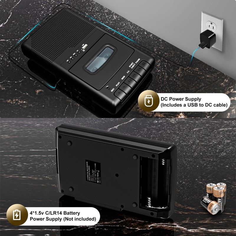 - 【2 Power Supply and 3.5mm Earphone Jack】The shoebox tape player can be powered by an AC adapter (not included) or 4*C batteries (not included). It can meet your different needs in different places.The cassette player features a high-quality 3.5mm headphone jack, ensuring crystal-clear sound playback of your favorite cassette tapes. Allowing us to enjoy our own private music space by simply plugging in a 3.5mm headphone.