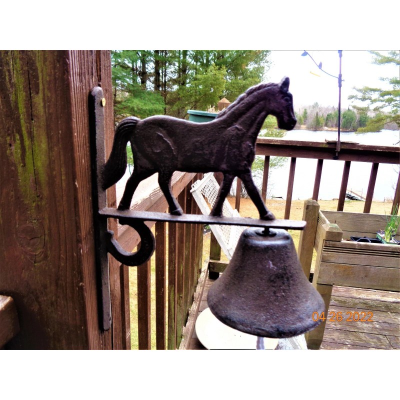 Cast Iron YELLOWSTONE Lucky Horseshoe and Horse Metal Hanging Dinner Bell