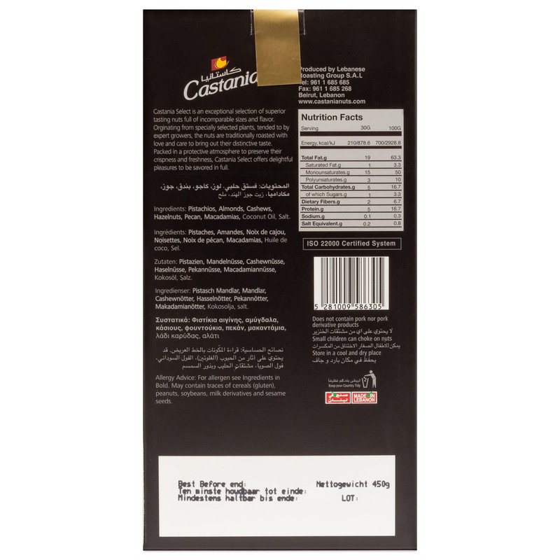 - Ausgewählte Mischung: Cashews, Pistazien, Haselnüsse, Mandeln, Pekannüsse, Macadamias