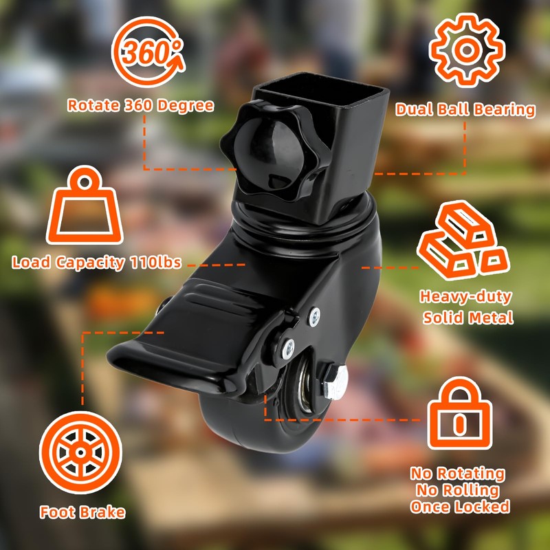 2 Inch Casters for Blackstone Griddle Stand, 2" Heavy Duty Wheels 360 Degree Swivel with Brake Lock, Griddle Accessories Fit for Blackstone 17''/22'' Tabletop Griddle Stand, Pack of 4