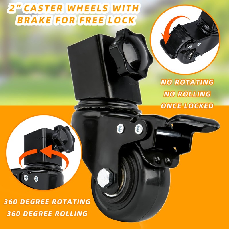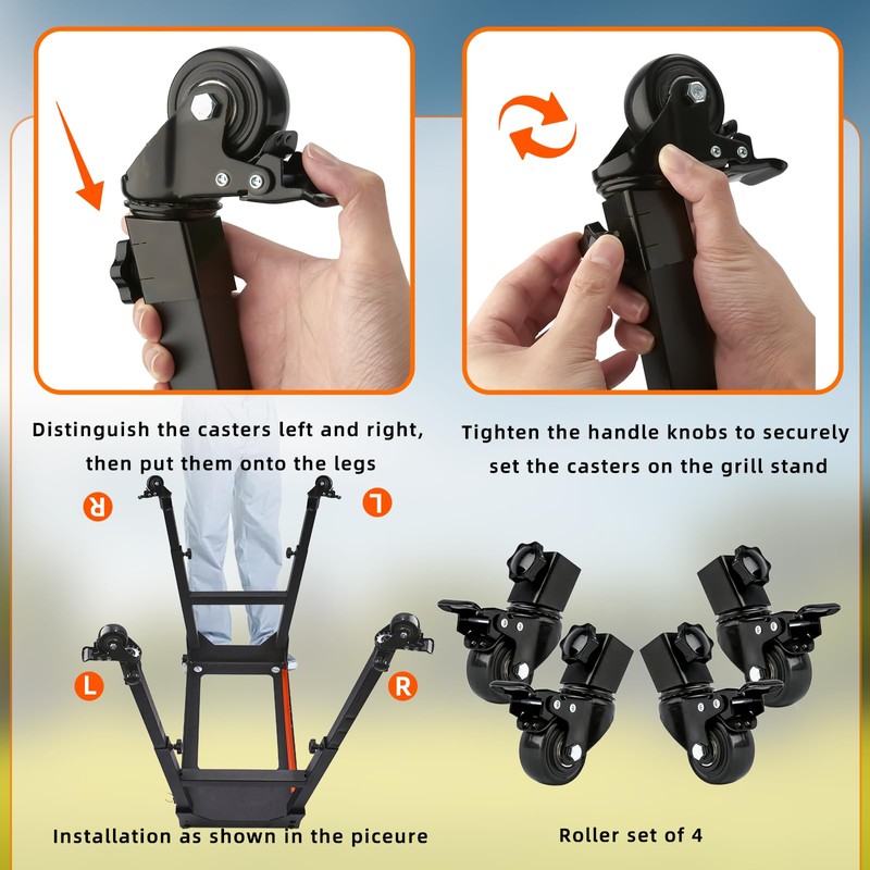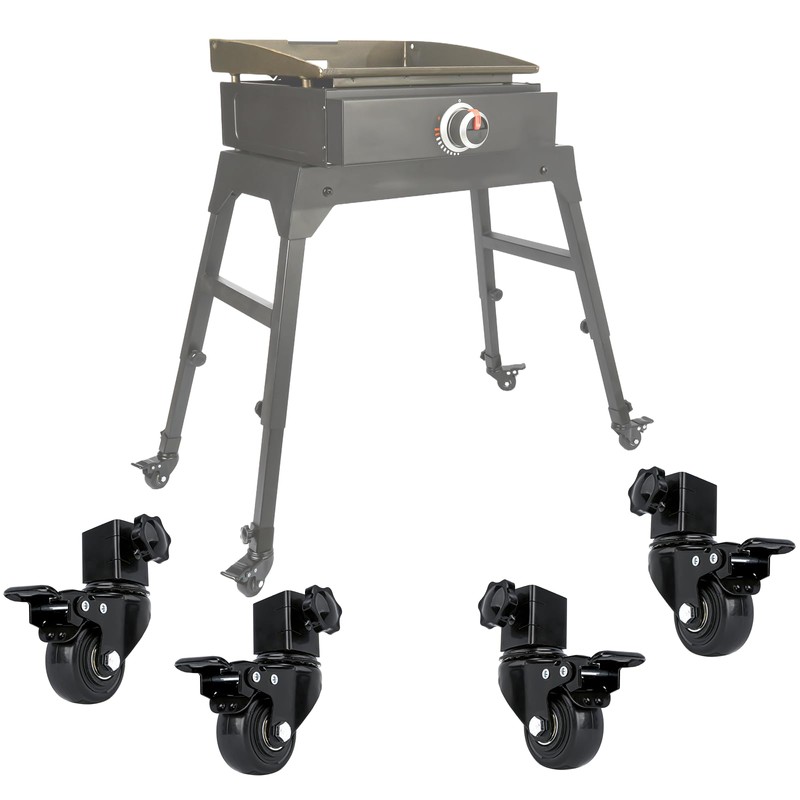 - 【Very Easy to Install】Take about 2 minutes to mount the wheels on the square legs WITHOUT any tools needed, just tighten the set screw knobs by hand. Added an additional 2.9 inches of height to your griddle stand when these caster wheels are installed, less bend over and save your back.