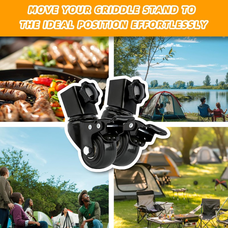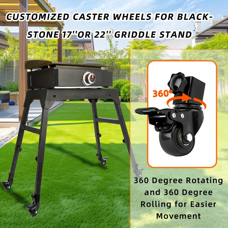- 【Griddle Stand on the go】These customized casters are perfect for Blackstone 17''/22'' Table top Griddle Stand. It is very nice to have wheels on your Griddle Stand to be able to move the grill while set up. For absolute safety, we do not recommend to move the stand during burning.