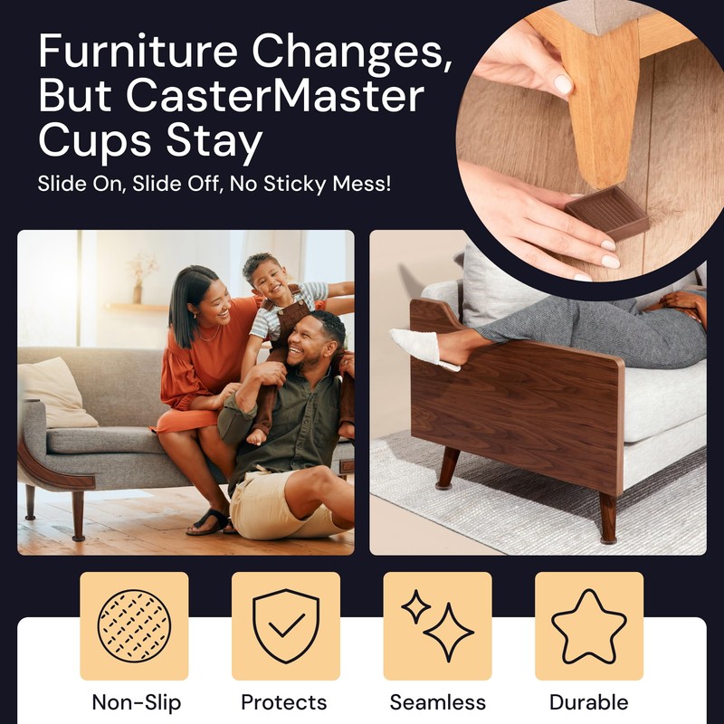 - Versatile Floor Protection: Our protective non slip furniture pads are suitable for hardwood, vinyl, carpet, ceramic tile, and cement floors. Crafted from anti-slip flexible rubber, CasterMaster furniture coasters grip surfaces firmly, ensuring furniture remains in place and floors stay protected