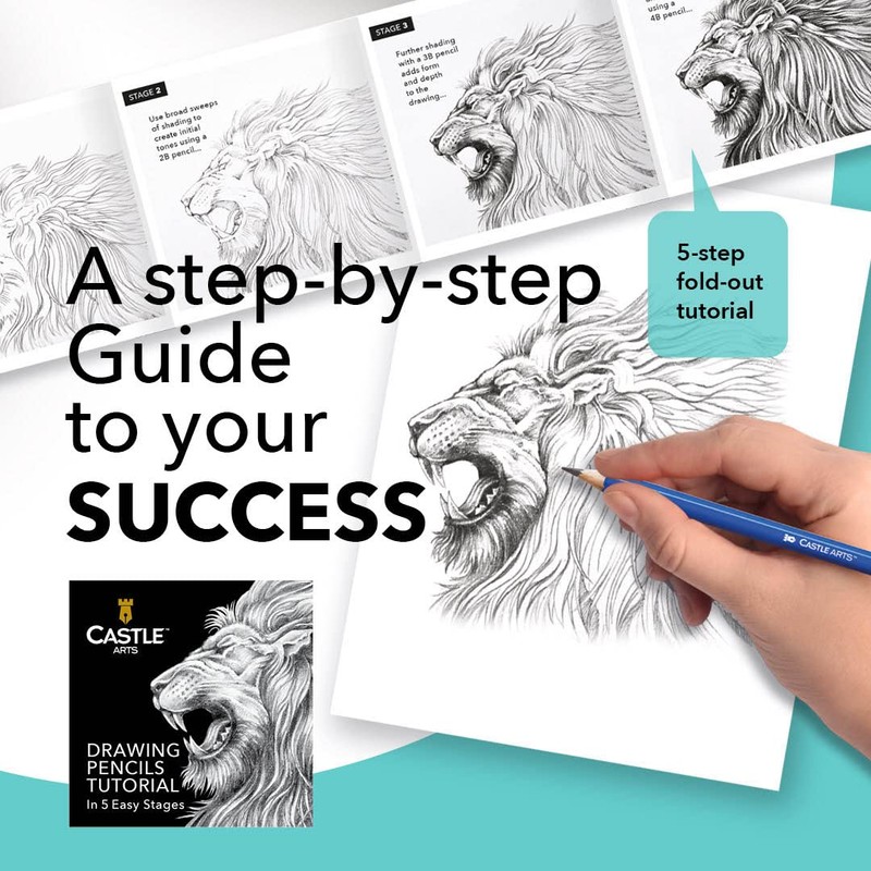 Castle Art Supplies 12 Piece Graphite Drawing Pencils Set | For Adult Artists – Beginners and Advanced | Presented in Attractive, Compact, Sturdy Metal Case With Tutorial