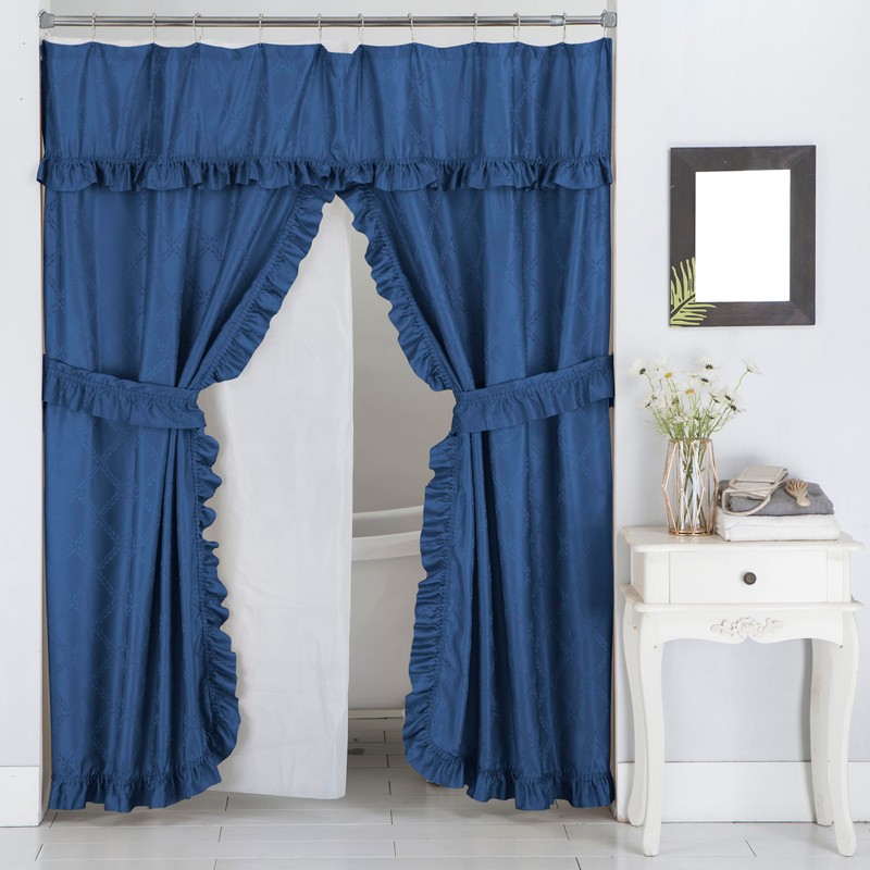 - Double swag ruffled bath and shower curtain with attached ruffled valance 70x72 inch