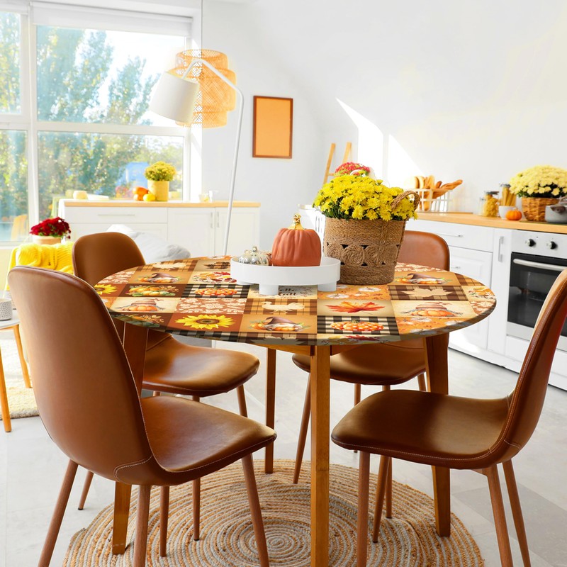 - Elastic Edge Design: These Thanksgiving fall round elastic tablecloth with adjustable elastic band,easy to install and remove,and makes the tablecloth suitable for 36-52 inch round table,perfectly fit the table and fixed,elastic edge prevents the tablecloth from slipping or being blown up by the wind, which increases the safety of use.
