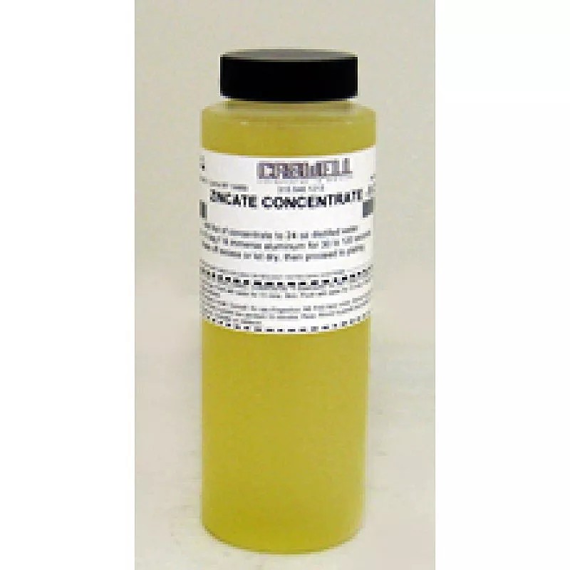 - Make up the zincate solution by adding 1 quart of concentrate to 3 quarts of distilled water.