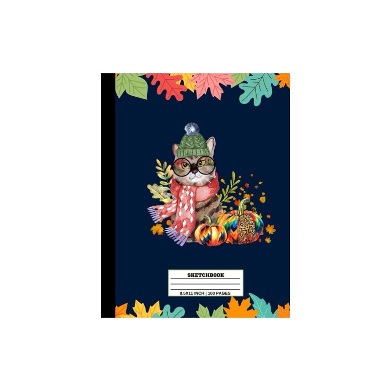 Cat And Pumpkin Sketchbook: Autumn Personalized Sketchbook Journal Drawing, Doodling, Sketching For Kid, Man, Student, Girls | 8.5x11 in 100 Pages
