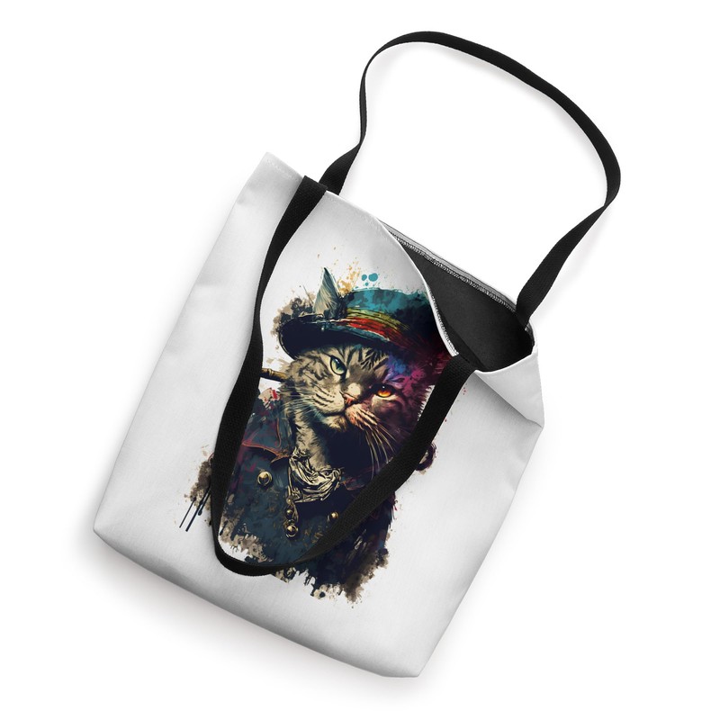Cat as a Pirate Wearing Uniform and Hat Painting Cat Pirate Tote Bag