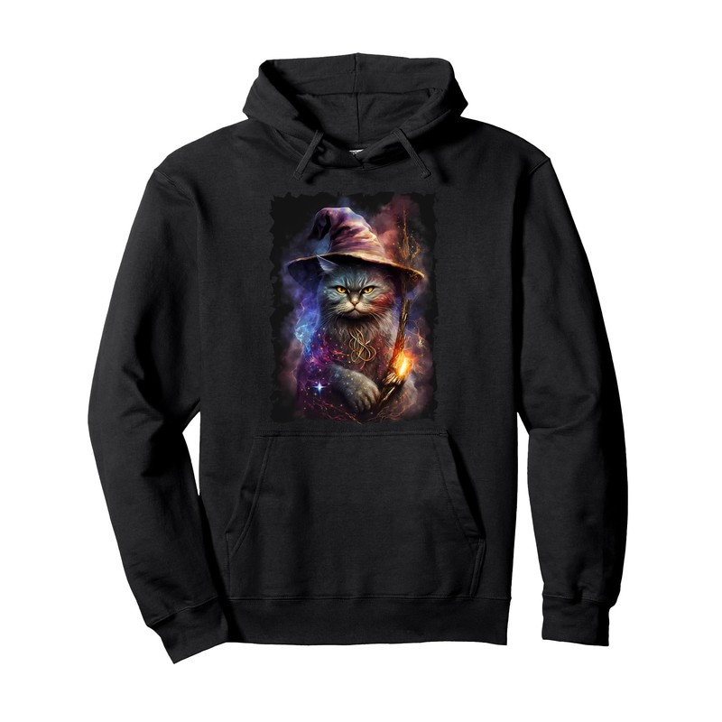 - Tap into the hidden realms of magic and sorcery with this unique design. The fusion of cat and wizardry symbolism in the artwork celebrates the innate mystical nature of cats, inviting you to embrace your own connection to the realm of spellcasting.