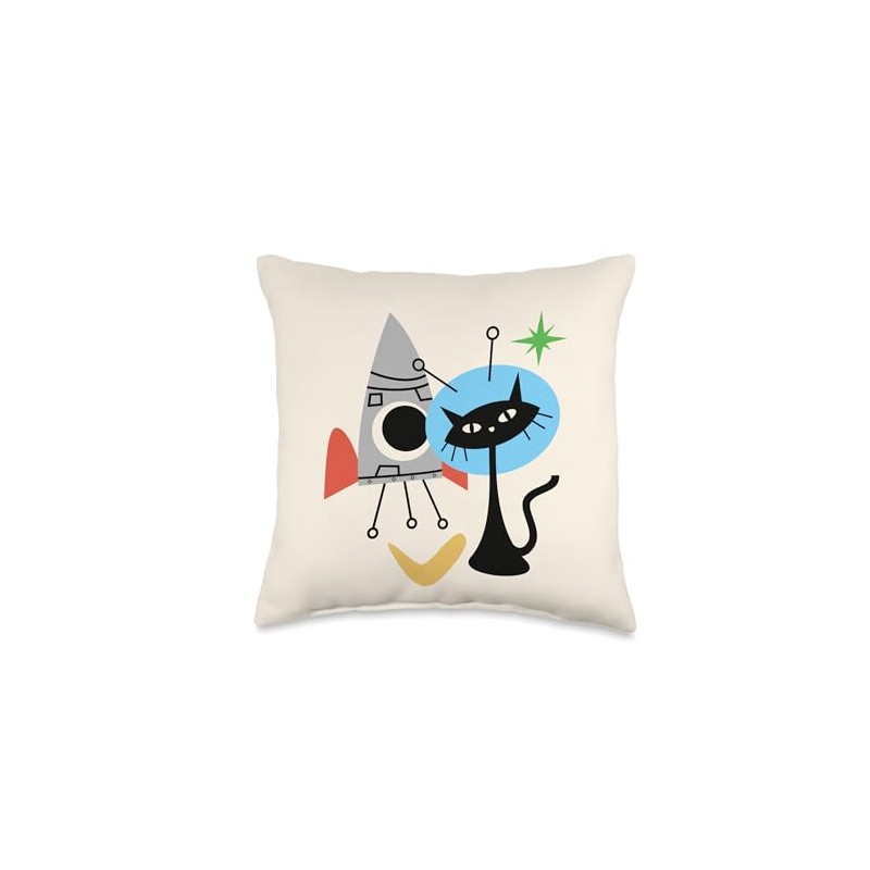 Cat Astronaut Space Retro Atomic Age Mid-Century Modern Throw Pillow