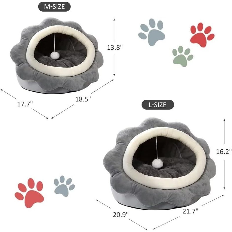 Cat Beds for Indoor Cats - Small Cat Bed with Anti-Slip Bottom, Sunflower-Shaped Cat/Dog Cave with Hanging Toy, Puppy Bed with Removable Cotton Pad, Super Soft Calming, Multiple Sizes(Grey L)