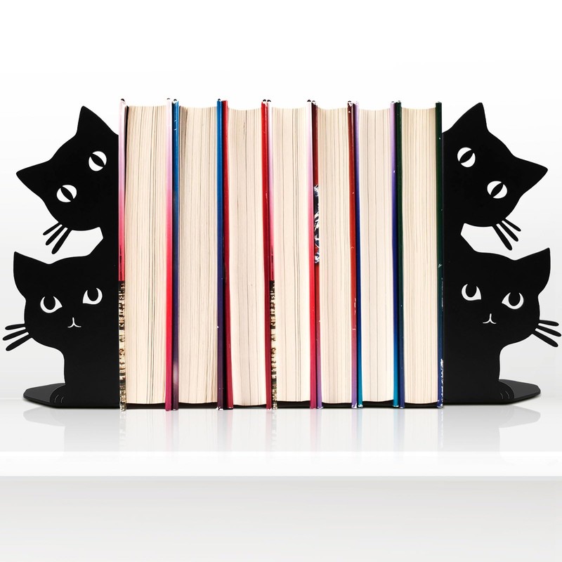 Cat Bookend, Desktop Bookshelf Firmly and Never Fall, Desktop Organization, Office Supplies Storage (Cat)