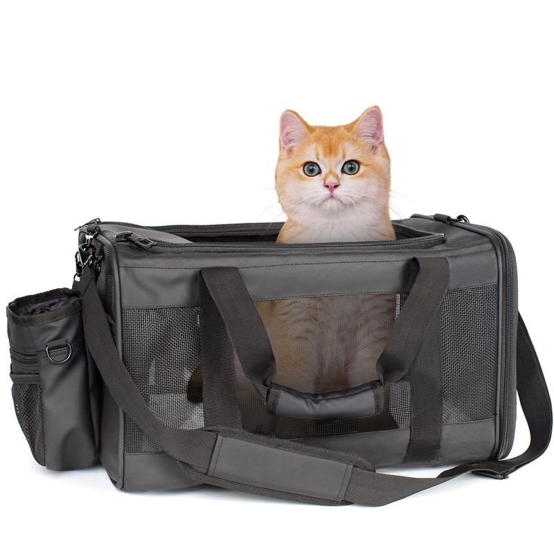 - WATERPROOF & DURABLE - This cat carrier is made of durable, lightweight and waterproof polyester fabric. The four-side mesh will not only give a safe and comfortable travel for your pet, but also easy for you to check on your pet