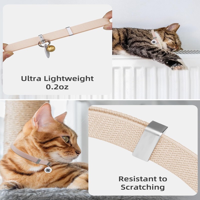 - Adjustable and Scratch-resistant: Featuring a detachable design and enhanced elasticity,our cat Airtag collar ensures a secure fit for active outdoor feline companions.It allows your cat to quickly and safely break free in dangerous situations, preventing choking hazards.The cat collar is also scratch-resistant,thanks to the absence of air tags.
