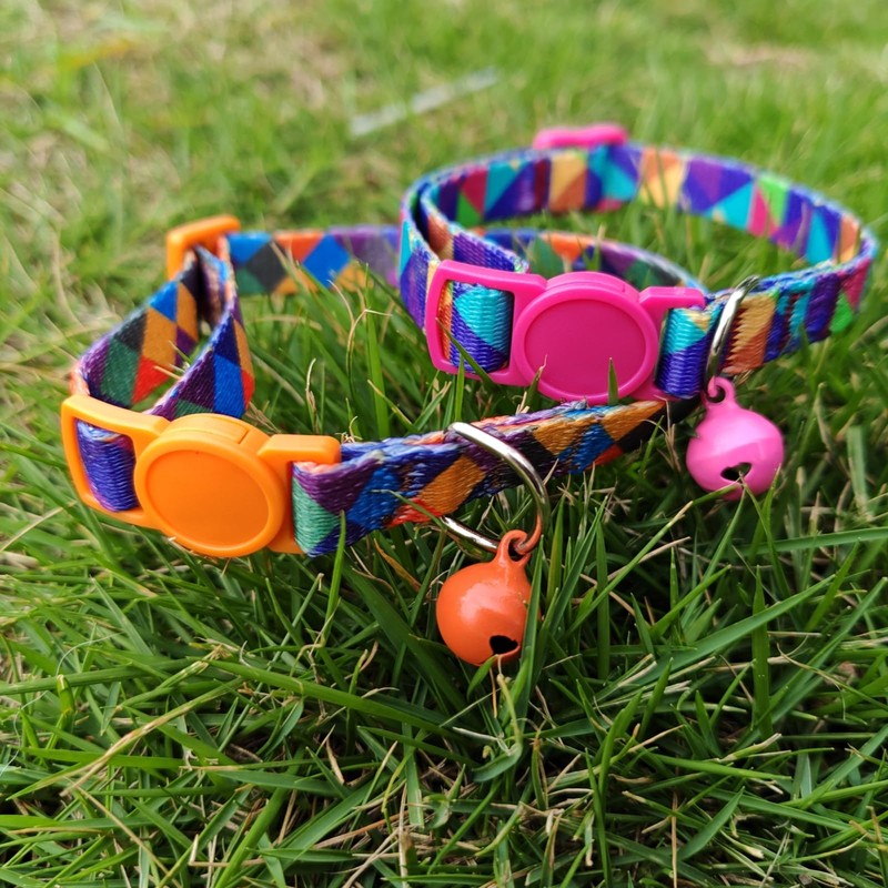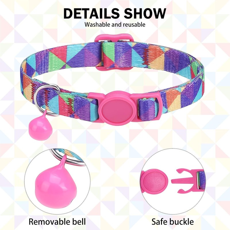 - Design: Multicolored printing pattern with a small bell attached, perfect for adding a touch of charm to your pet’s outfit.