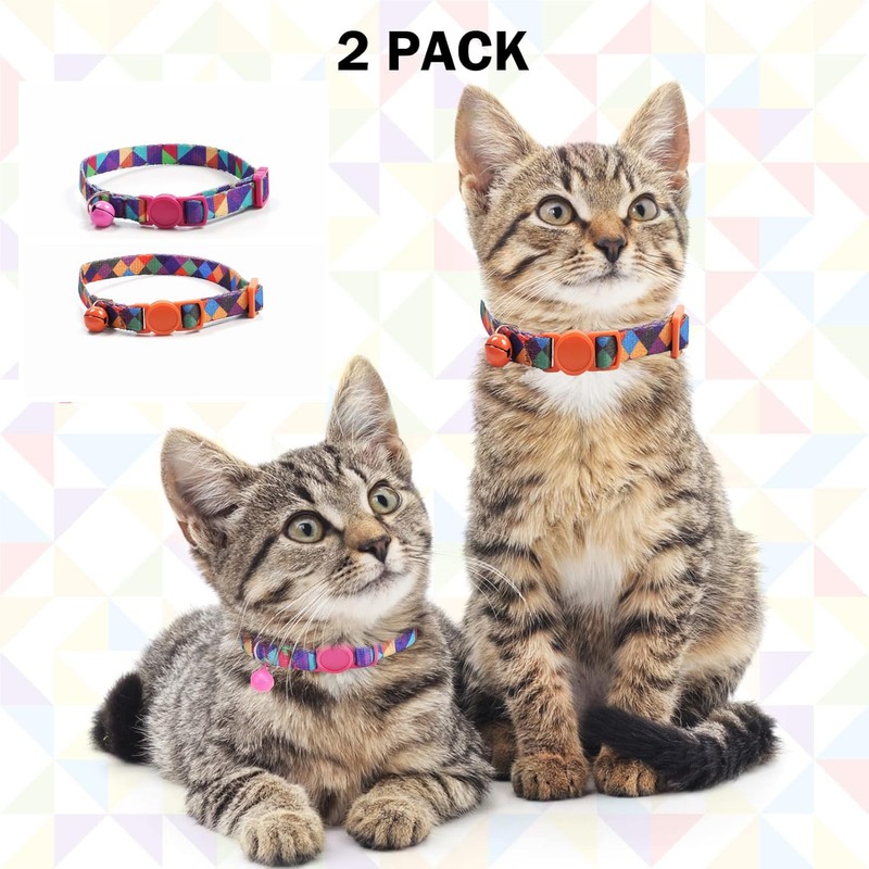 Cat Collars With Bell,Adjustable Collar With Quick Release Safty Buckle,Nylon Webbing with Printing Pattern in Rose Geometry and Multicolored Diamond Pack of 2
