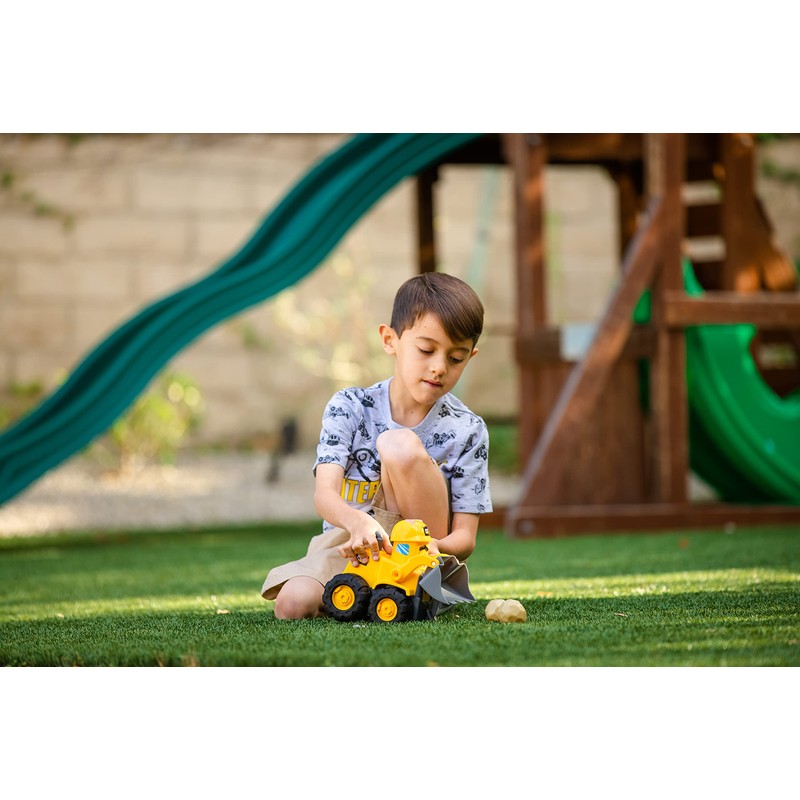- MOVES FORWARD AND DUMPS THE PAYLOAD: Fill the scoop and the loader moves forward, dumps the payload, then reverse to its starting position