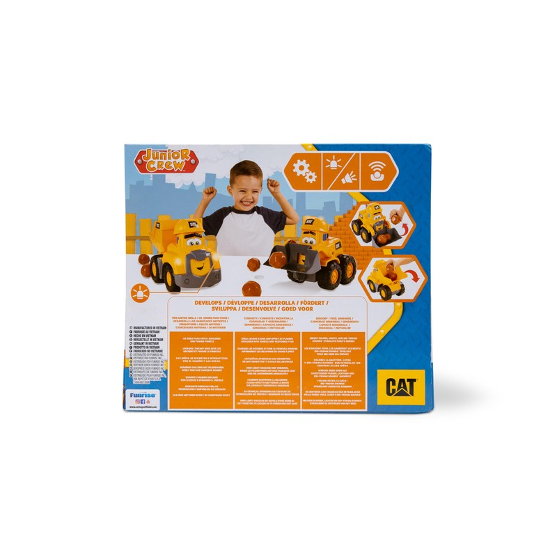 The CAT Construction buddies are ideal toy vehicles to introduce your child to the world of CAT Construction. The CAT Construction buddies are interactive. The CAT construction buddies toy loader senses when you load the toy loader with a payload and moves forward, dumps the payload and then reverses back to its original position. The Construction buddies also feature an animated face when you press down on the helmet. Batteries are included for fun right out of the box. Appropriate for ages 2 and older.
