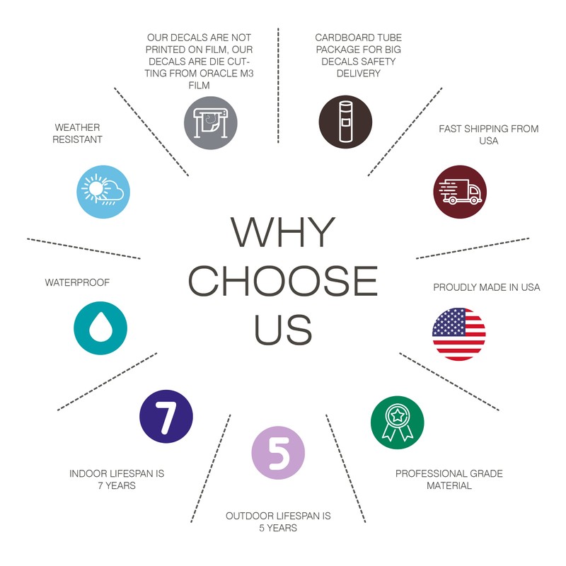 This vinyl decal is cut from high quality vinyl. Decal can be used both indoors and outdoors.