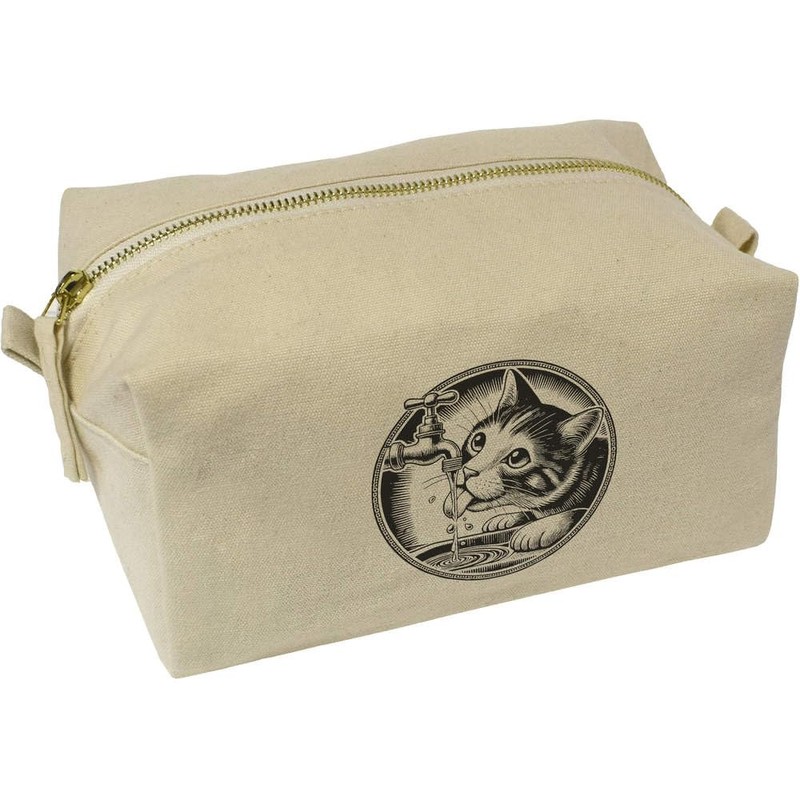 'Cat Drinking from Tap' Canvas Wash Bag/Makeup Case (CS00043141)