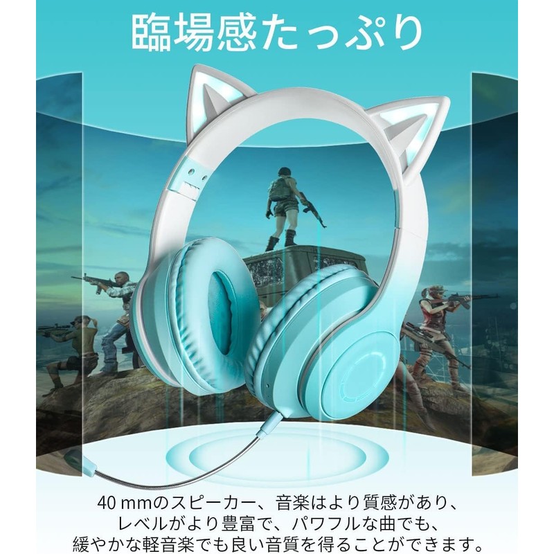 Cat Ear Headphones, Sparkling Rainbow Color Conversion, Cute, Wireless Headphones, Wired, Wireless, Dual Use, Bluetooth Gaming Headset, Bluetooth 5.1, Bluetooth Headset, Includes
