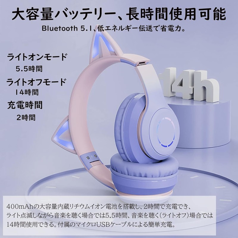 Cat Ear Headphones Wireless Headphones Bluetooth 5.1 Wireless Noise Cancelling Headphones Wired Wireless Dual Use Over-Ear Headphones Built-in Microphone with LED Light Bluetooth
