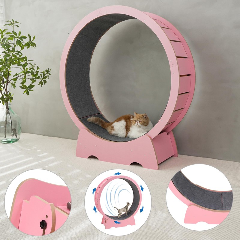 Cat Exercise Wheel for Indoor Cats, 40 inch Large Cat Runner Treadmill, Easy Assembled Cat Running Wheels with Locking Mechanism, Ultra-Quiet Running Protect Spine (Pink)