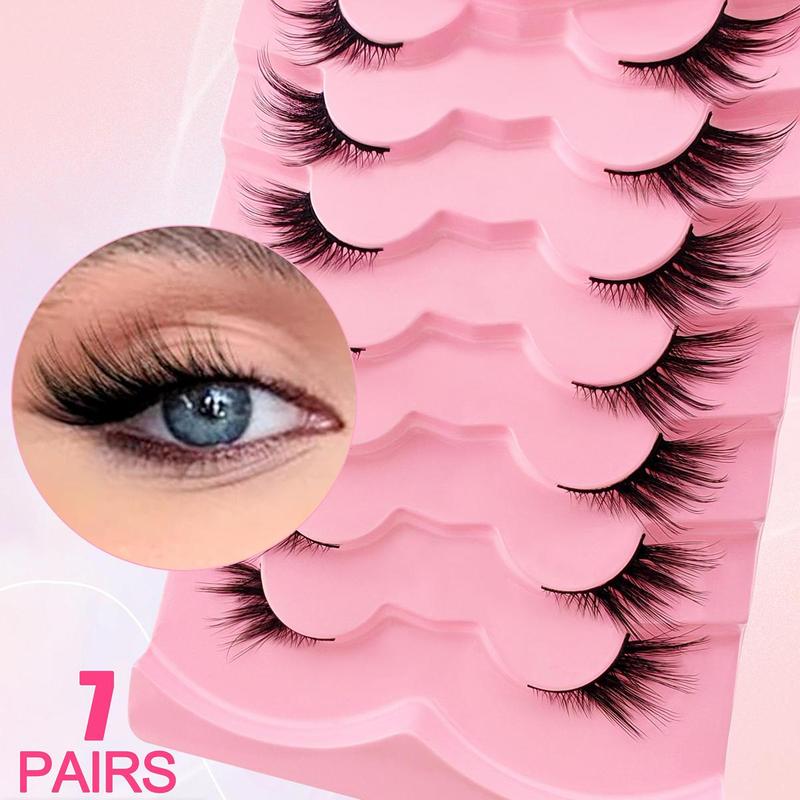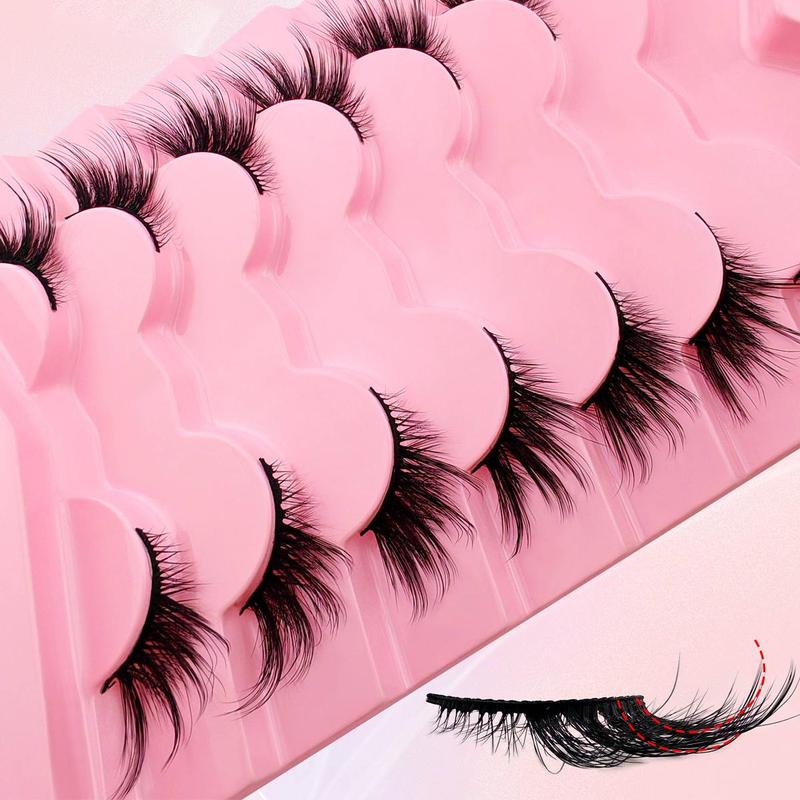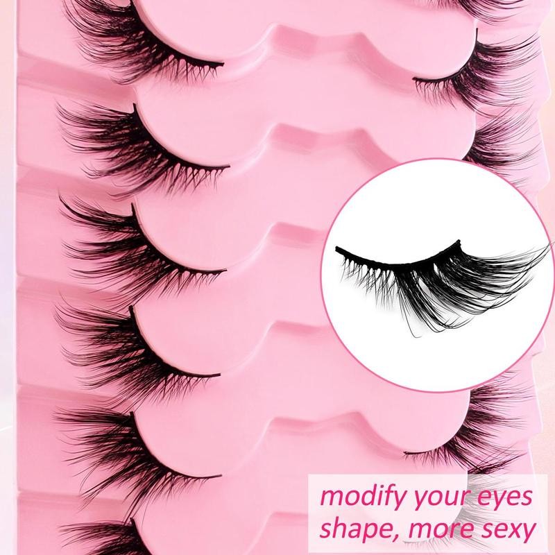 Cat Eye Half False Eyelashes, 7 Pairs Natural Look Wispy Fluffy Faux Eyelashes, Tail Elongated Lashes For Lashes Extensions, Christmas Gift