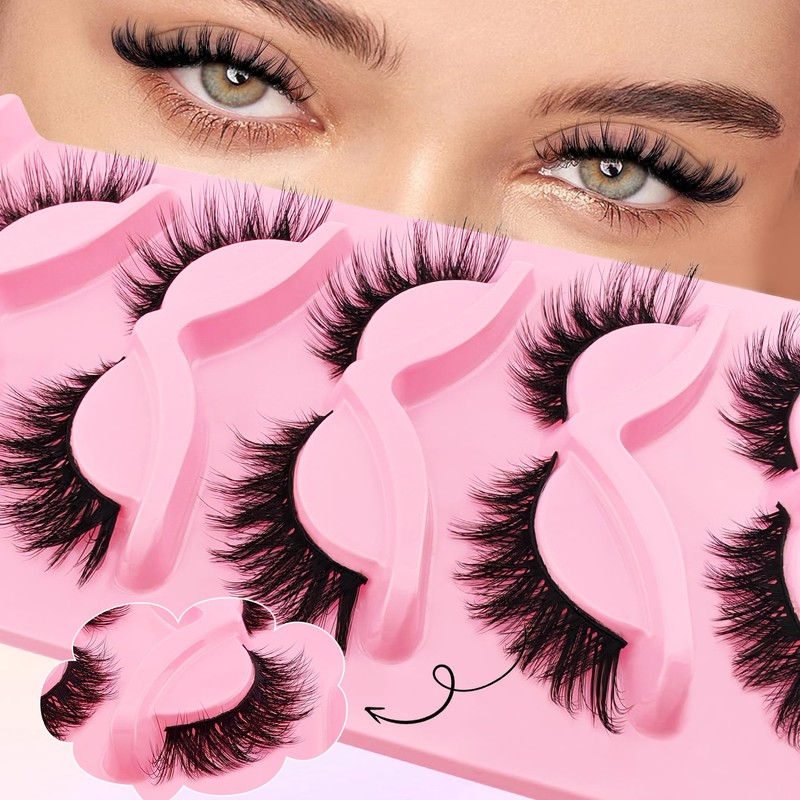 Cat Eye Lashes Fluffy 18mm Curly Volume Eyelashes, that Look Like Extensions Fox Eye Lashes, Wispy Faux Mink False Eyelashes 5 Pairs Pack(8X)