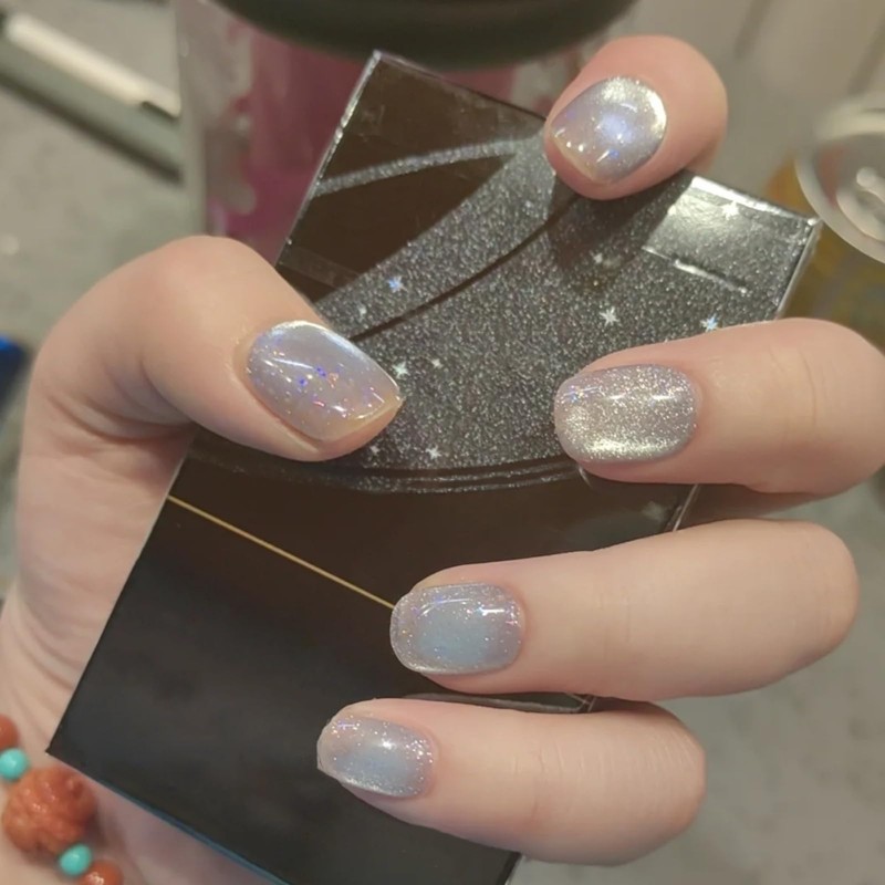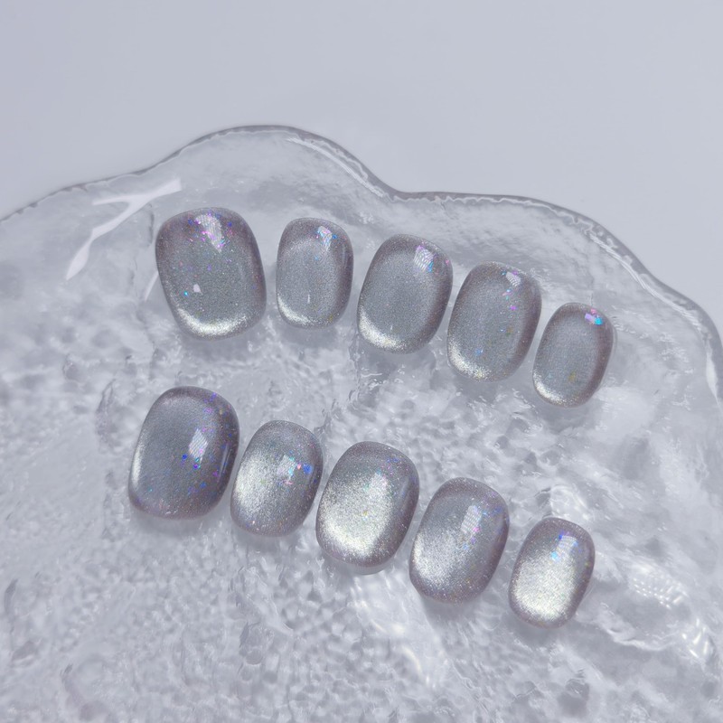 - DESIGN: Our short oval/square/extra short square round stick-on nails are all handmade by experienced and aesthetic nail artists. These magnetic cat eye false nails have glitter shimmer/sequins/aurora/side light/solid color/french tips/double-color light/jelly/water-like soak off designs, clean and elegant, exquisite and unique