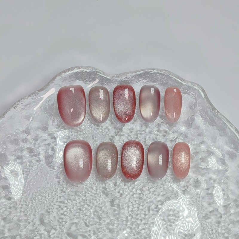 - DESIGN: Our short oval/square/extra short square round stick-on nails are all handmade by experienced and aesthetic nail artists. These magnetic cat eye false nails have glitter shimmer/sequins/aurora/side light/solid color/french tips/double-color light/jelly/water-like soak off designs, clean and elegant, exquisite and unique