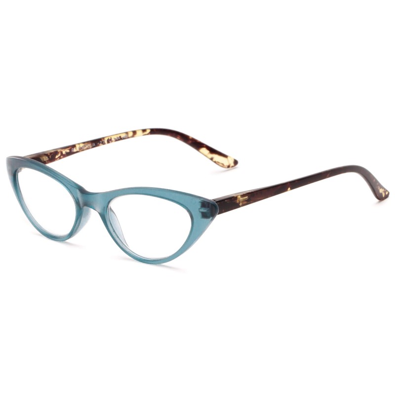 - THE STELLA +2.25 BLUE/TORTOISE: Look stellar in The Stella! This frosted matte cat eye frame comes in multiple fashion colors with tortoise accent temples and spring hinges for added comfort.