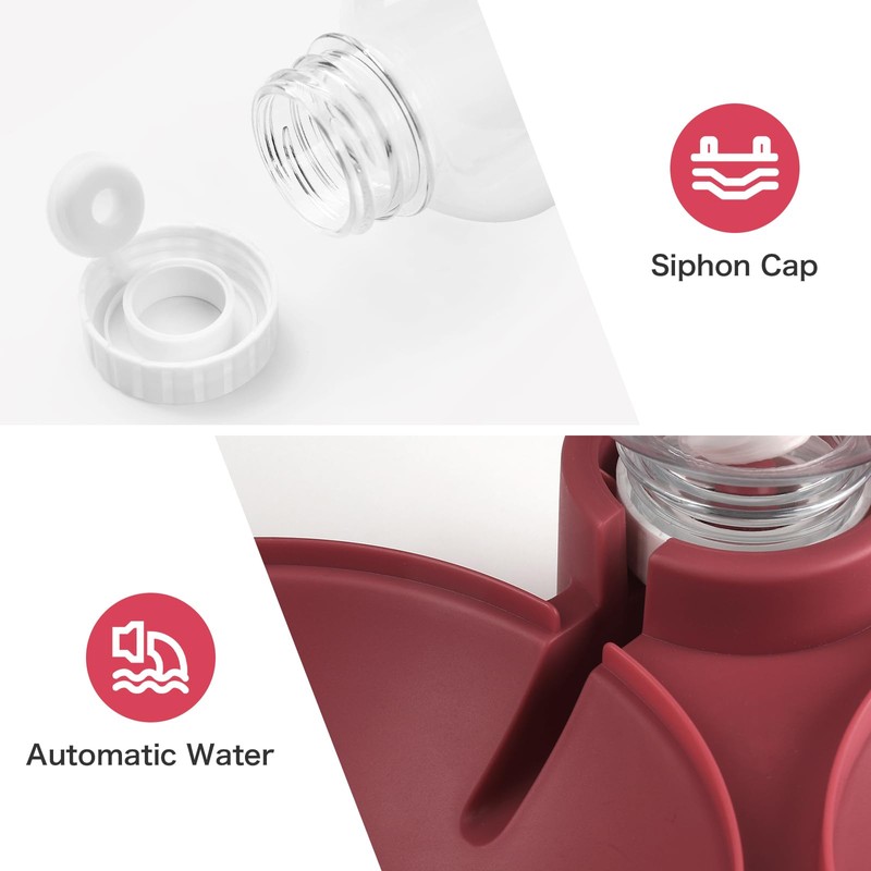 • 【Automatic Water Supply】This cat water bowl uses the siphon principle to automatically replenish water. The 17-ounce water bottle can meet the drinking needs of a cat or small dog for two to three days. Even if you are not at home, your pet can drink clean water every day.