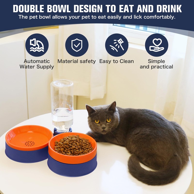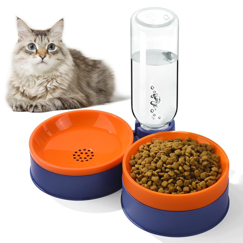 - AUTOMATIC WATER SUPPLY: This cat water bowl uses the siphon principle to automatically replenish water. The 17-ounce water bottle can meet the drinking needs of a cat or small dog for two to three days. Even if you are not at home, your pet can drink clean water every day