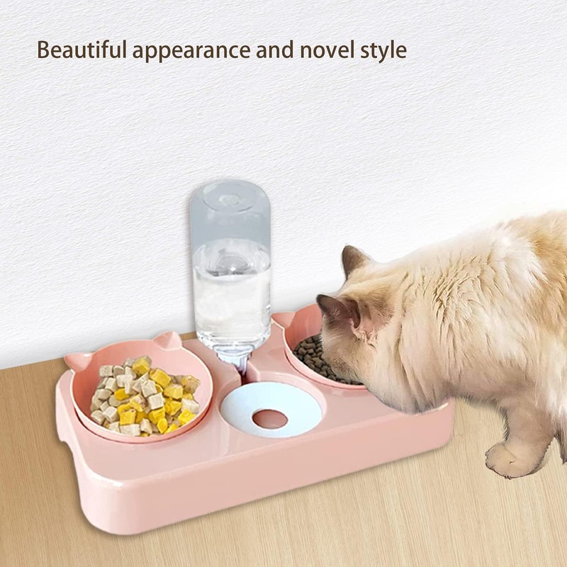 Cat Food Bowl, Cat Food and Water Bowl Set, Automatic Gravity Water Outlet Design, Dry and Wet Separation, Anti Vomitting, Whisker Fatigue, Removable for Cleaning (Pink)