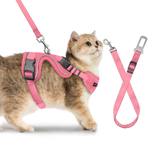 Cat Harness, Cat Harness and Leash Set, Soft and Breathable Vest with Reflective Strip, Anti Escape Adjustable Easy to Wear for Walking and Traveling, Pink, M