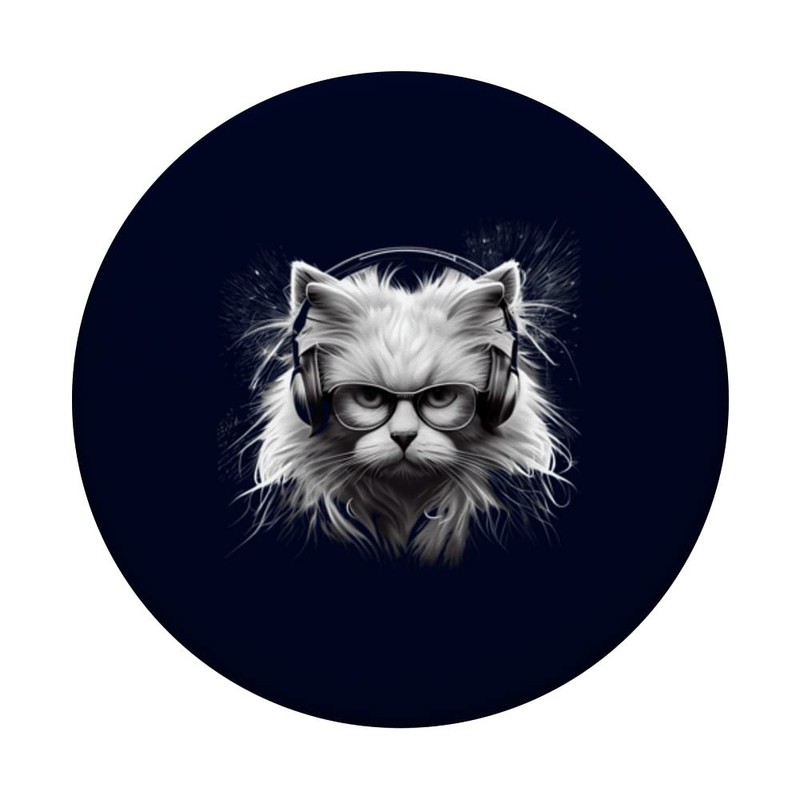 Cat Head with Glasses Headphones Cool Cat PopSockets Swappable PopGrip