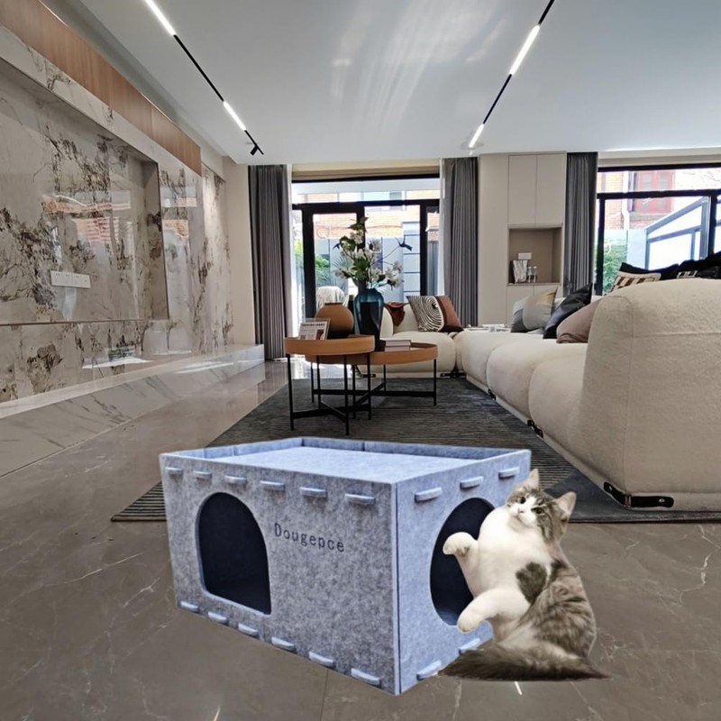 - 【Effortless Cleaning】 : You can clean every corner of the cat cando by opening the edge with a lint roller, hair collector, or a vacuum attachment,ensuring a clean and cosy environment for your cats.Felt material withstands tough swipes and ensures your cat's nails and paws stay protected during relaxed scratching sessions. Its unique texture, a perfect blend of softness and firmness, satisfies cats' kneading and scratching instincts, providing a gratifying tactile experience.