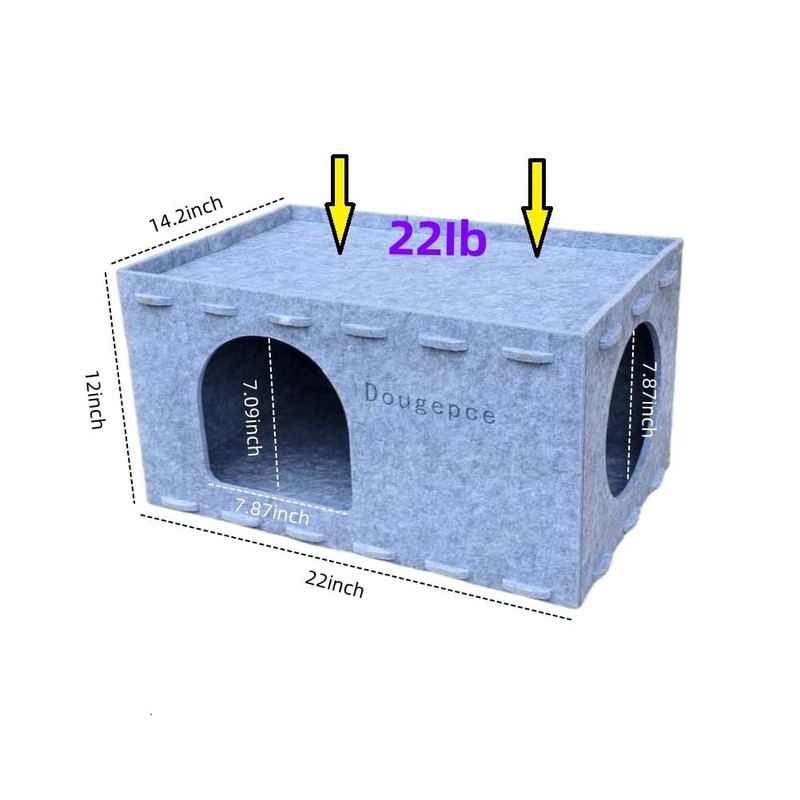- 【Extra large space】: The cat hideaway measures 22.8 x 14 x 11.8in, it's spacious enough to accomodate multiple cats up to 22lb.Additionally, the felt material offers insulation, warmth, and soundproofing features. The dense nature of thick felt helps dampen sound,it provides a reliable and secure space tailored for your furry companions, allowing them to jump and play freely.