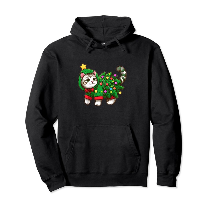 Cat in a Christmas Tree Costume Pullover Hoodie
