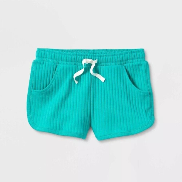 Cat & jack Girl's Size Medium (7/8) Shorts Pull-on Ribbed Dark Mint w Pockets