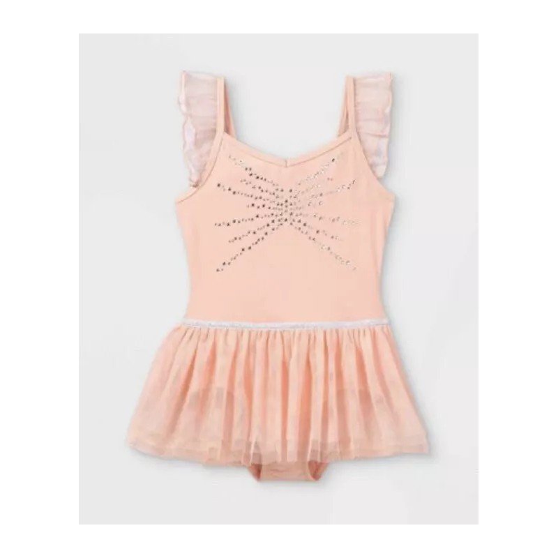 Cat & Jack Pink Cami Flutter Sleeve Leotard Girls Size S (6/6X)