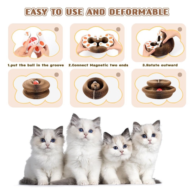Cat kurlz,Cat Scratching Board Toy with a Ball,Magic Organ Cat Scratch Board Foldable Accordion Cat Toy