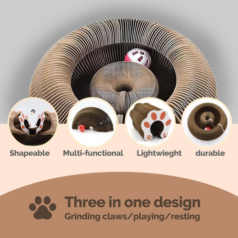 - 【Multifunctional Magic Organ Cat Scratching Board】A cat accordion board toy with a ball, magic organ cat scratcher with honeycomb encryption and thickening, tight gaps, sturdy and durable, and will not harm the paws. Cat scratching toy,the unique accordion design not only looks beautiful and elegant, but also allows cats to stretch and scratch freely while playing, satisfying their natural needs.