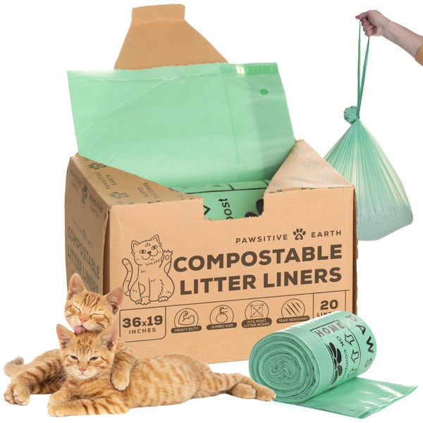 - Each box includes 36" x 19" compostable cat litter liners, perfectly sized for a secure fit and easy disposal. Featuring a CONVENIENT DRAWSTRING DESIGN, these liners ensure quick and efficient cleanup.